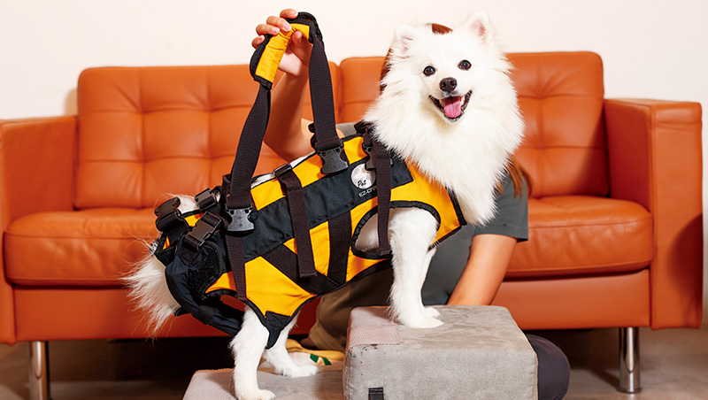「狗狗可能瞬間就不能站,牠沒辦法理解這是怎麼回事,而且可能(不斷退化)永遠站不起來,」天群健康事業總經理郭洢帆說。這間公司在一九八○年由她父親創立,開發、代理各種要在輪椅、病床等設備間移動的移轉位輔具,在二○一九年跨入寵物輔具。