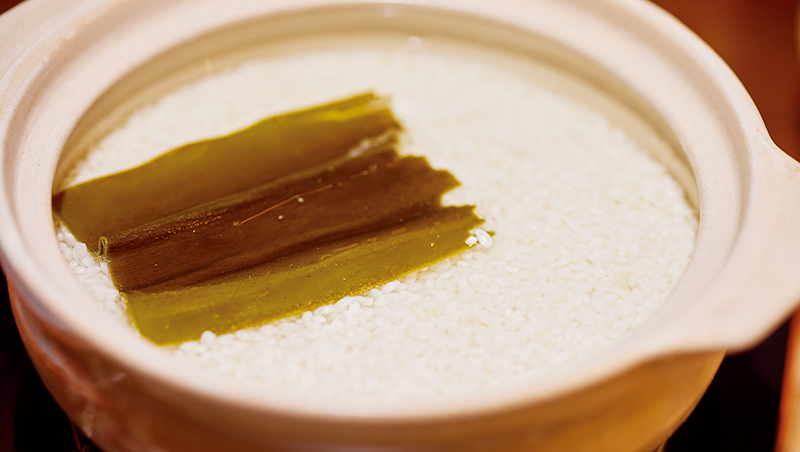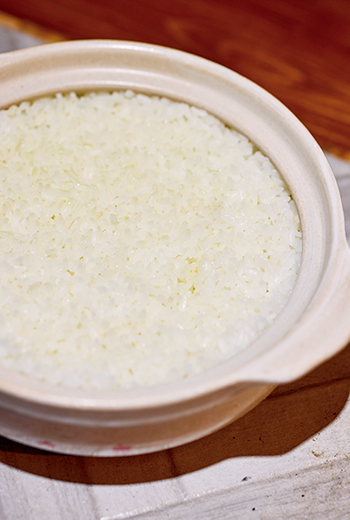 接著是最關鍵的煮飯。用砂鍋精準計算水量,幾克水對應相同重量的米。米和水入砂鍋後,火力轉大,水面翻滾起泡,立刻計時,12分鐘最保險,13分鐘就可能焦底。火關掉後,再燜15分鐘,這段時間不能心急,也不能偷掀鍋蓋,否則熱氣逸散,口感就會受影響。