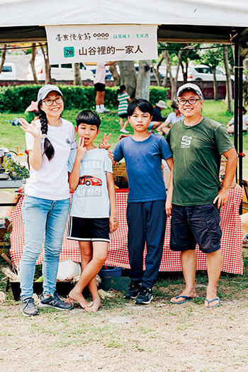 大地餐桌 建峪(右一)與雅鈴(左一)一家人,常跑市集擺攤販售自製商品。(來源:山谷裡的一家人提供)|放大原圖