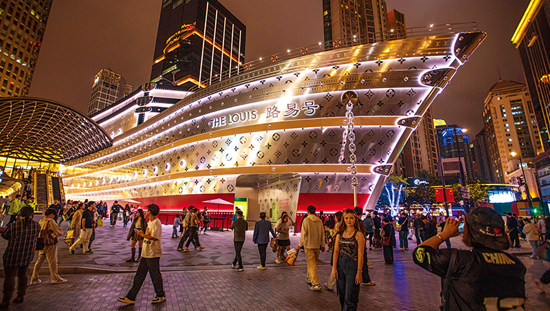 週六晚上,我們在上海興業太古匯商城看見,隨著LV路易號旗艦店進駐,人潮暴漲3倍,但現場打卡拍照遊客眾多,提袋消費的顧客仍有限。(攝影者.郭涵羚)