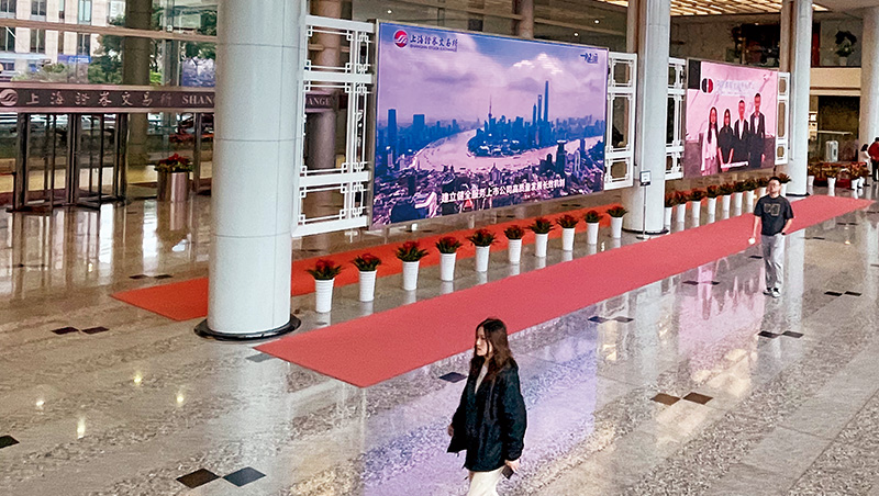 上證指數創10年新高,但在上海證交所冷清的大廳裡感覺不到股市熱度。(攝影者:郭涵羚)|放大原圖