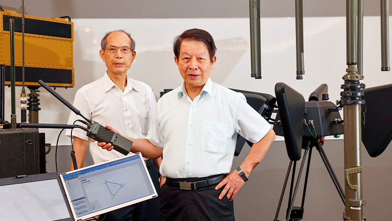 合勤董事長朱順一(右)與系統開發事業群副總經理李炳欽(左)是大學同學,2人是公司國防通訊技術的核心推手,攜手打造出今日的獲利關鍵部門。(攝影者.駱裕隆)