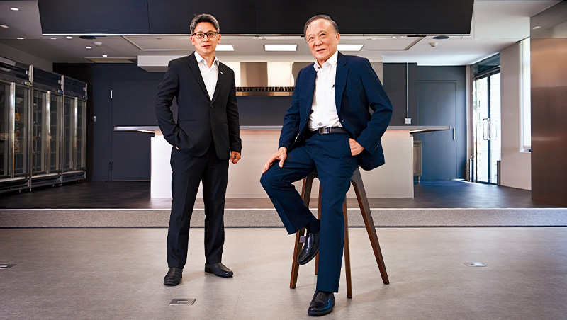 大成董事長韓家宇(右)認為越早導入AI提升競爭力,面對變動的韌性就更強;資訊長陸浩翔(左)在他的支持下,目標發展出10個AI代理(Agent)。(攝影者.程思迪)