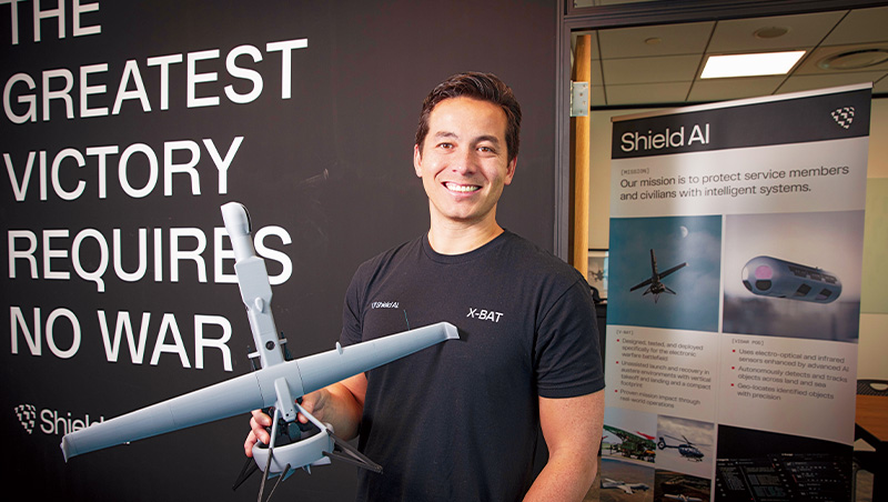 Shield AI開發出全球第一款自主飛行AI軟體,可裝在各式無人機上,即使在訊號被中斷、屏蔽的艱困環境,仍能靠AI完成飛行任務,拿下美國國防部、日本、新加坡等軍方訂單。公司二○一五年成立至今,估值已逾五十三億美元(約合新台幣一千六百七十一億元),成為美國估值第二高的國防科技新創。