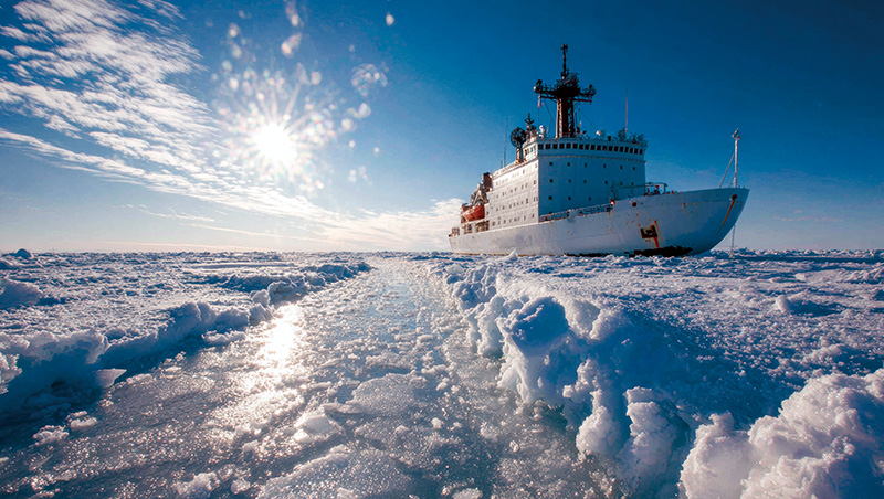 美國驗船協會預測,10年內會先看到利用核能發電的港口,接下來才是核動力貨櫃輪的投入使用。圖為AI生成的核動力破冰船示意圖。(來源.Dreamstime/典匠影像)