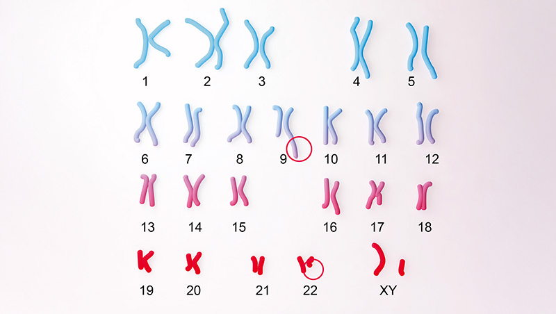 費城染色體異常涉及第9與第22對染色體轉位互換,是急性淋巴性白血病中常見的染色體異常之一。(來源.shutterstock)