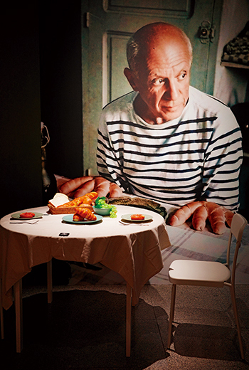 展覽現場,可以看見畢卡索每日午餐的餐桌及食物雕塑,讓觀展更靠近藝術家本身。(攝影者:游琁如)|放大原圖