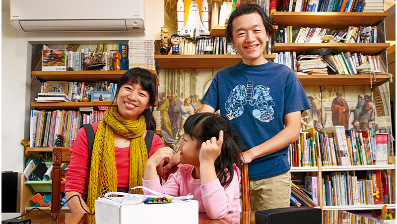 採訪結束前,羅佩琪(左1)與科學背景的丈夫廖英凱(右1)仍討論AI是否會扼殺小孩的好奇心。這沒有對錯,但女兒能因此感受到父母對她的關心和愛。(攝影者.程思迪)