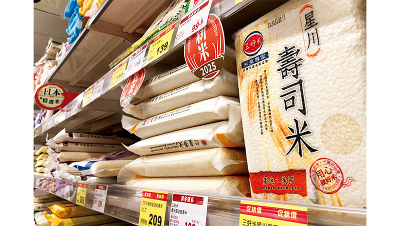 走進全聯,貨架上常態銷售美國米,背後就是台灣3大米廠供貨。進口米已打入主食供應鏈,影響力日增。(攝影者.程思迪)