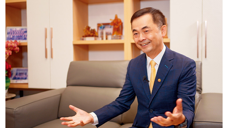 家登董事長邱銘乾在剛落成1個多月的新總部,向商周指出,抱團能否成功,關鍵不是控股,而是成員間的友誼與榮譽。(攝影者.陳沛妤)