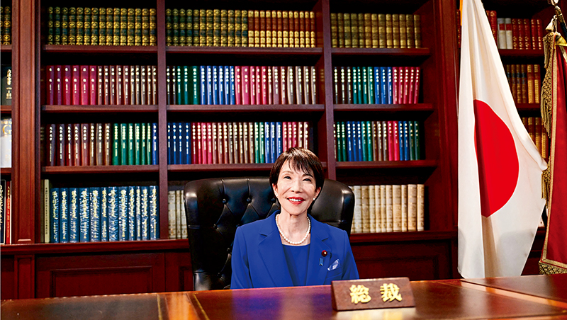 新任自民黨總裁高市早苗於勝選後首次入座總裁辦公室,是自民黨創立70年以來第一位女性總裁。(來源.達志影像)