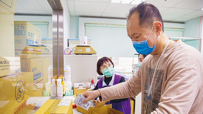 新北市立聯合醫院的復能計畫,讓輕度失智者回歸職場,在藥劑部包藥, 雖然一旁仍需要有人指引、確認,但工作就是最好的復健。(攝影者.郭涵羚)
