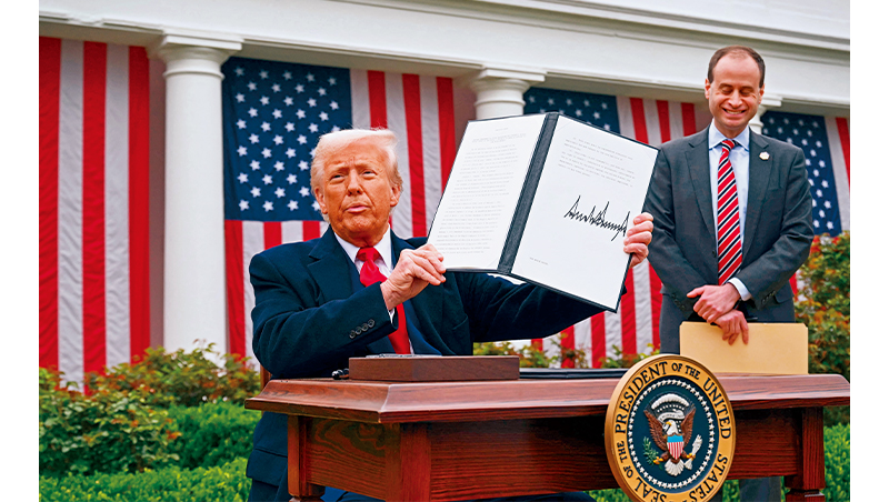 2025年4月,川普宣布對等關稅,成為對外談判的核心籌碼,只是,這套關稅機制的法律基礎,仍未通過最高法院的考驗。(來源.法新社)