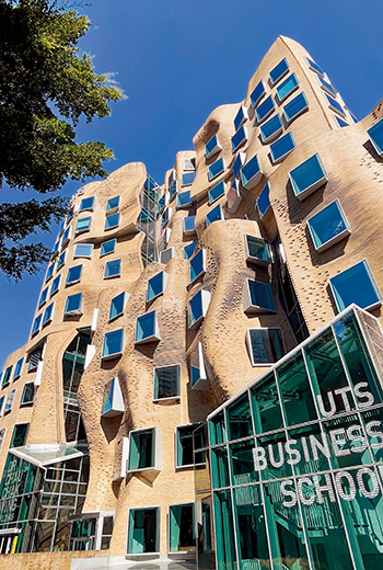 二○○四年我到澳洲雪梨旅行,特別去澳洲雪梨科技大學(UTS),參觀建築師蓋瑞所設計的教學大樓——周澤榮博士大樓(Dr Chau Chak Wing Building)。這座教學大樓是蓋瑞在澳洲的第一座建築,位於商學院八號樓,由澳洲華裔富商及企業家周澤榮博士捐款興建,於二○一五年正式完工啟用。建築外觀充滿波浪狀曲線,好像起伏不定的浪潮,看了令人有些昏眩。