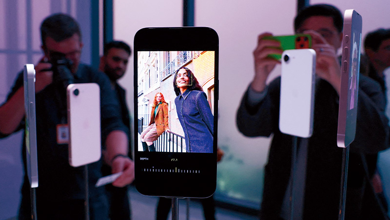 蘋果即將迎來50週年,新款iPhone 17e成迎戰AI浪潮關鍵。圖為3月初紐約曼哈頓旗艦店發表會,展示新機吸引全球目光。(來源.法新社)