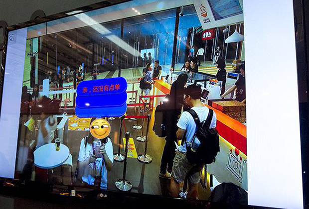 倘若還未點餐,你的影像上方則會被出現「親,還沒有點單」的文字。據說如果是超級會員或尊貴的APASS會員,會有特效加成,也就是螢幕上的影像還會被戴上一頂小皇冠,不過在現場暫時還未見到傳說中的土豪們。