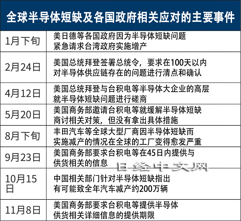 在行業內,一直認為「半導體短缺在2022年也將持續」。如果美國政府和台積電等半導體大企業的相互不信任加深,有可能給旨在緩解全球半導體短缺的一系列措施造成打擊。