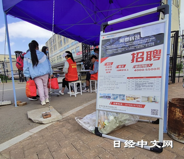 「我們剛剛決定將工廠二期的員工人數從1萬5千人增加到2萬人」, 日經走訪雲南昆明聞泰科技的工廠時,招聘人員這樣説。