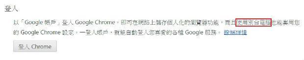 不過,這個功能的前提是得登入 Google Chrome--以「Google 帳戶」登入Google Chrome,即可在網路上儲存個人化的瀏覽器功能,而且使用別台電腦也能套用您的Google Chrome設定,使用自己的書籤、應用程式、記錄、密碼及其他設定。