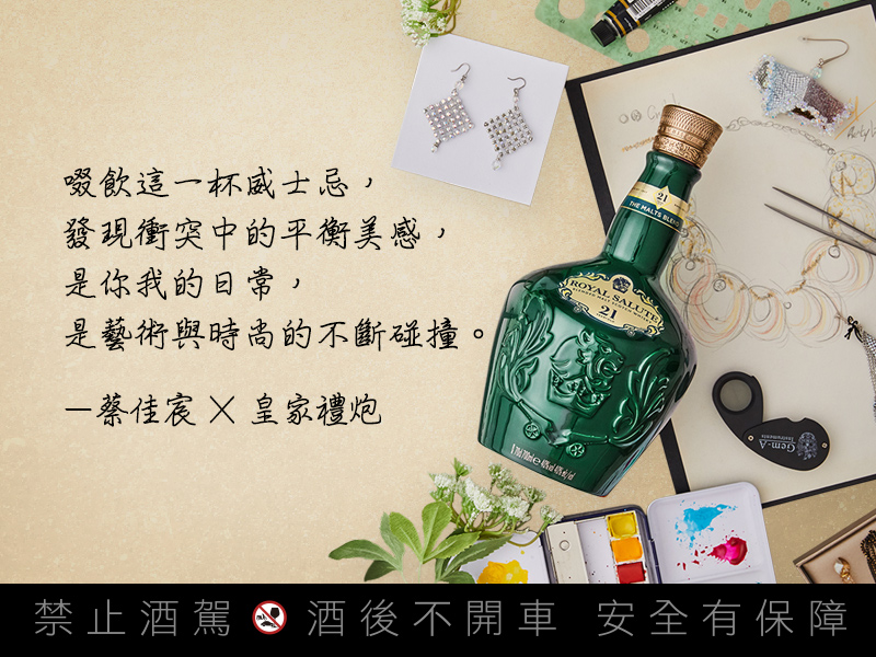 「若說皇家禮炮21年調和式麥芽威士忌是一件訂製珠寶,那會是宏大氣勢中帶點俏皮的風格,是一種值得收藏的叛逆。」精通高訂客製珠寶設計的蔡佳宸被譽為「珠寶的裁縫師」,今日,她將舌尖上的感受編織成具體想像。