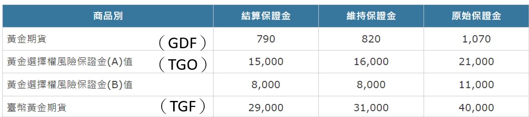 圖表資料來源:台灣期貨交易所 https://www.taifex.com.tw/cht/5/goldMargining