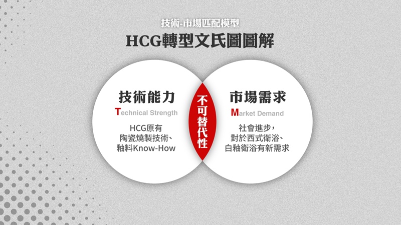 回顧這段轉型歷程, HCG和成當年能淬土成金、轉型成功,其實就是符合「技術-市場匹配」模型(Technology-Market Matching):將既有的陶瓷成型、釉藥配方、高壓成型技術開發、窯燒溫控等四大核心技術,精準對接台灣現代化進程中對高品質衛浴設備的渴望,以及進口產品價格昂貴所創造的本土製造商機,從而建立起難以撼動的競爭優勢。