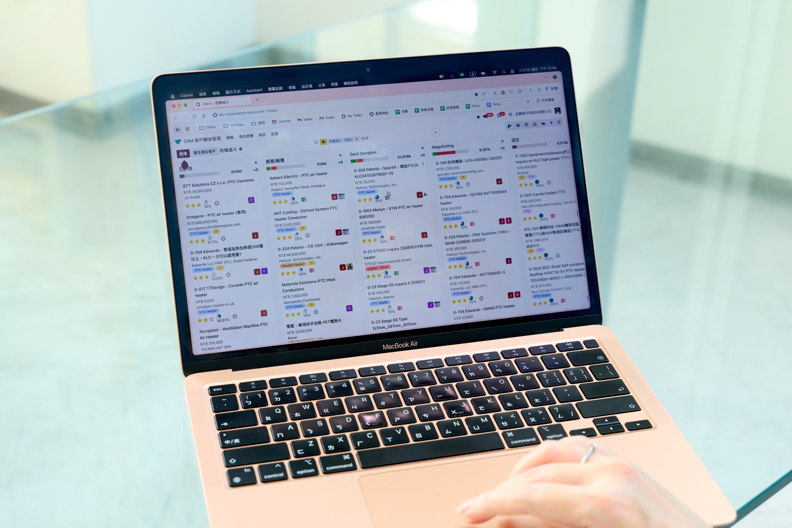 每天早上進辦公室,金龍俊科技總經理巫佳蓁第一件事,不再是翻報表,而是用手機或平板打開Odoo Dashboard,從訂單進度、產能狀況、專案風險與業務動態,同步顯示在同一畫面上,清楚又俐落地開啟繁忙的一天。