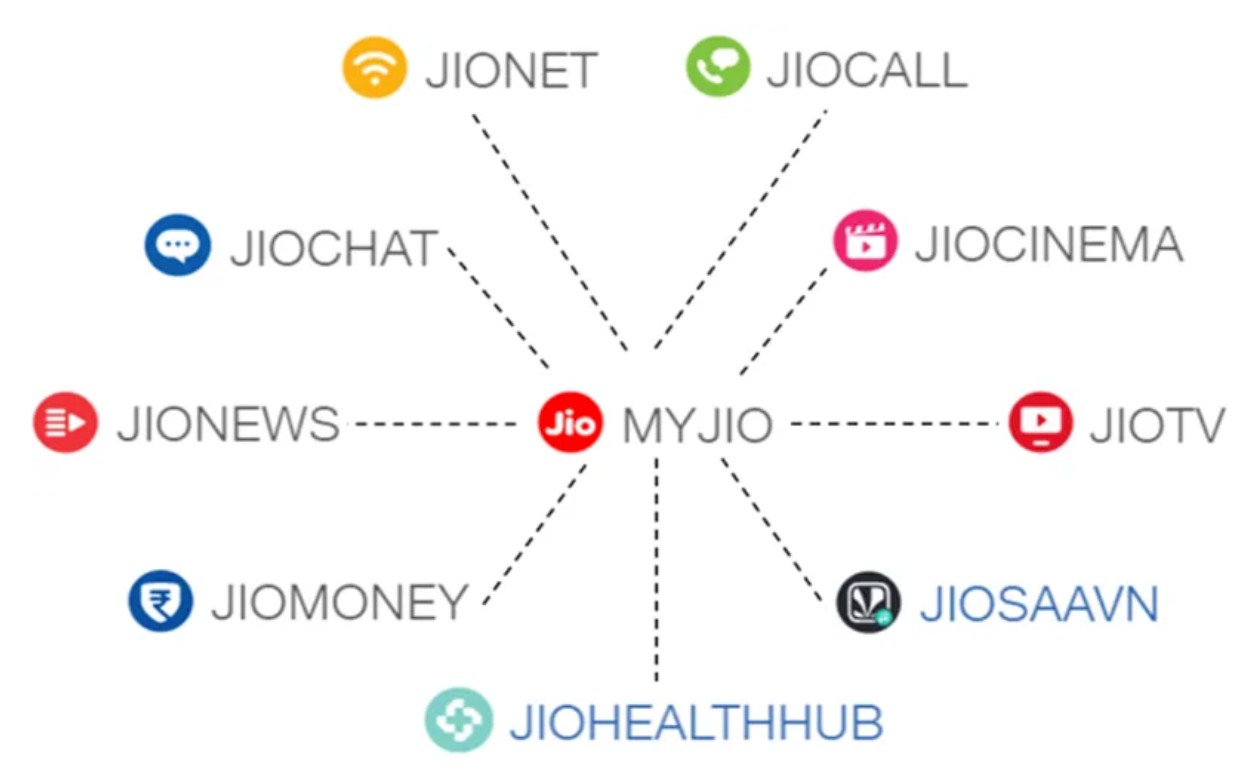 電商以外,Jio Platforms還有帳號管理APP MyJio、音樂下載和播放APP JioSaavn、可以收看電視劇集的JioTV、收看電影的JioCinema、即時通訊軟件JioChat,用來閱讀雜誌報紙以及瀏覽新聞的JioMags、JionNewsPaper、JioXpressNews,提供雲端服務的JioCloud、視訊會議服務的JioMeet、支付服務的JioMoney…Jio的觸角甚至還延伸到了線上教育和醫療。毫不誇張的說,Jio Platforms幾乎涵蓋了印度網友的所有需求。