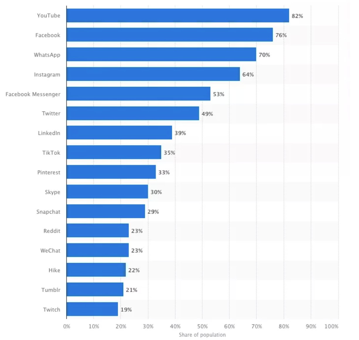 然而,中國真的是印度「科技本土化」的最大敵人?根據Statista 2019年第3季發布數據,印度社交媒體領域排名前十(用戶比例)中,僅有TikTok隸屬中國公司,其他均為美國科技巨頭掌控。