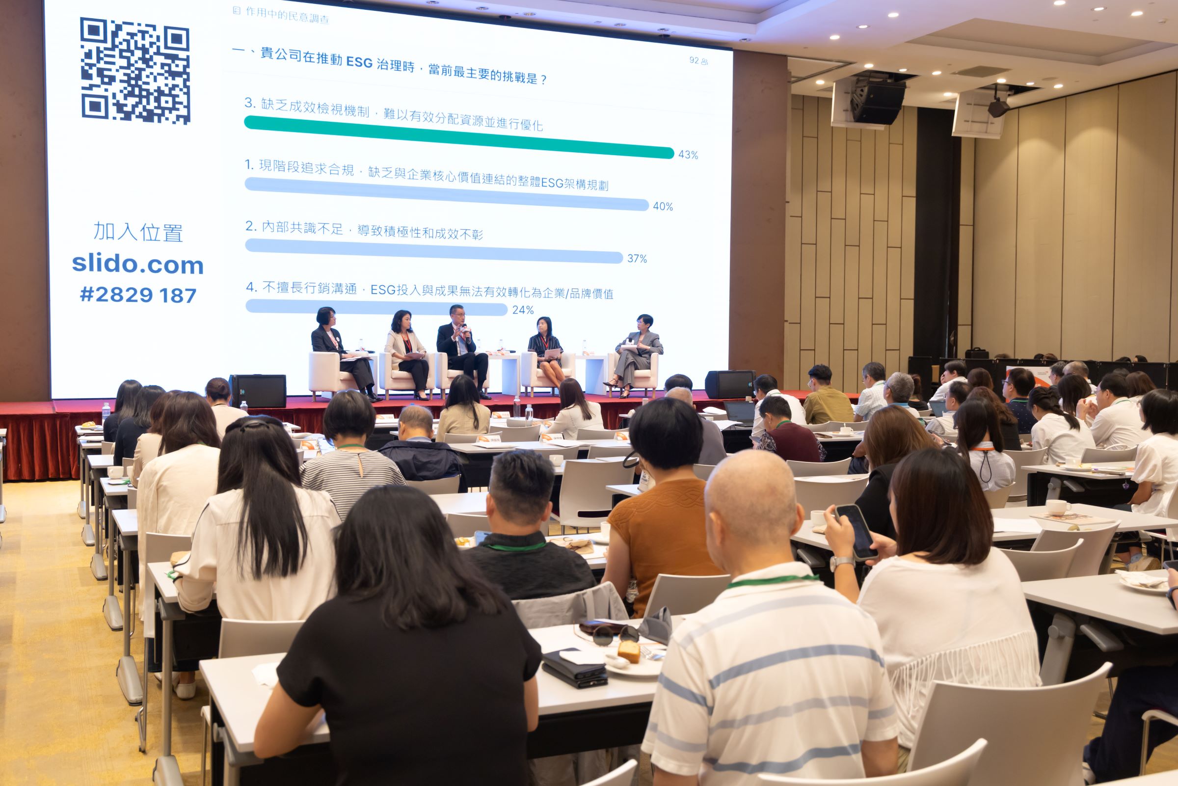 會中透過即時互動了解與會企業當前的ESG推動現況,發現多數企業的最大挑戰是「缺乏成效檢視機制,難以有效分配資源並進行優化(43%)」,以及「現階段追求合規,缺乏與企業核心價值連結的整體ESG架構規劃(40%)」。蔡佳芸指出,這兩大挑戰呼應到企業ESG要創造價值的「做什麼」和「怎麼做」。「做什麼」要回歸企業追求的價值,而不是只追求合規。「怎麼做」強調透過量化方式追蹤管理的重要性,例如SROI方法可以讓無形的社會回饋呈現有形的價值。