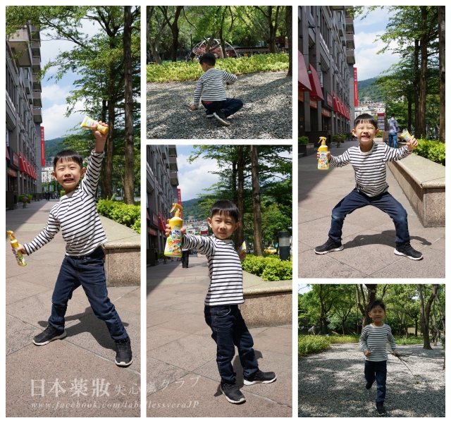 還好水瓶座也都是3分鐘熱度,跳了兩三遍之後,就跟我說:我好了,我要再來試一下大罐的防蚊噴霧! (兒子,這你去年也有噴,其實可以不用試!我說我的,他噴他的,完全耳邊風)一邊噴還一邊說,嗯~ 這個味道還不錯唷,聞起來很舒服,不會臭。XD