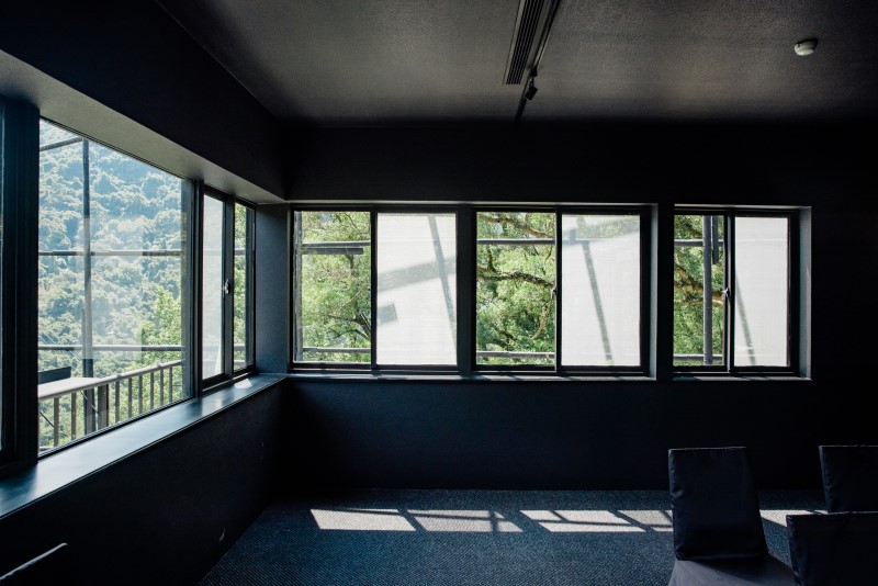 歌巴萊手作教室,秉持空間中建築弱化於自然的獨樹一格,室內空間以沉靜的黑色調呈現,更加突顯窗外山景的風光明媚,離開舊有的工作空間,放開腦中框架與禁錮,把心打開,迎接新思緒的到來,為團隊重新活化凝聚。