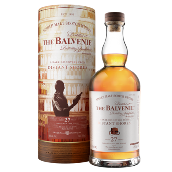 百富故事系列在2022年發表的全新篇章,故事起源於足跡踏遍世界各州的約翰巴瑞(John Barret),是百富首席調酒師大衛史都華(David C. Stewart)的多年老友兼木桶銷售夥伴。某次他倆相聚時,約翰從伴隨他尋訪各地的真皮陳舊旅行包中,拿出了幾瓶從加勒比海地區千里達群島帶回的Caroni蘭姆酒。加勒比海與蘭姆酒的故事,已經很耐人尋味,而Caroni這個已經關廠的傳奇蘭姆酒,讓約翰巴瑞跟大衛史都華,更想「尋味」。蘭姆酒桶在過去20年來,是百富威士忌過桶實驗中的要角。 1980年代首創「過桶工藝」且好奇心旺盛的大衛史都華,認為Caroni酒感強烈且具大膽個性。這位引領業界風潮的過桶大師,將一些在美國橡木桶中熟陳20年的威士忌,放入了稀有的Caroni蘭姆酒酒桶進行長達七年的二次熟成,而成就了這款百富故事系列27年濱海尋秘單一麥芽威士忌。