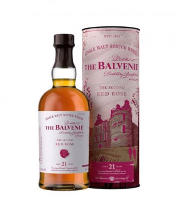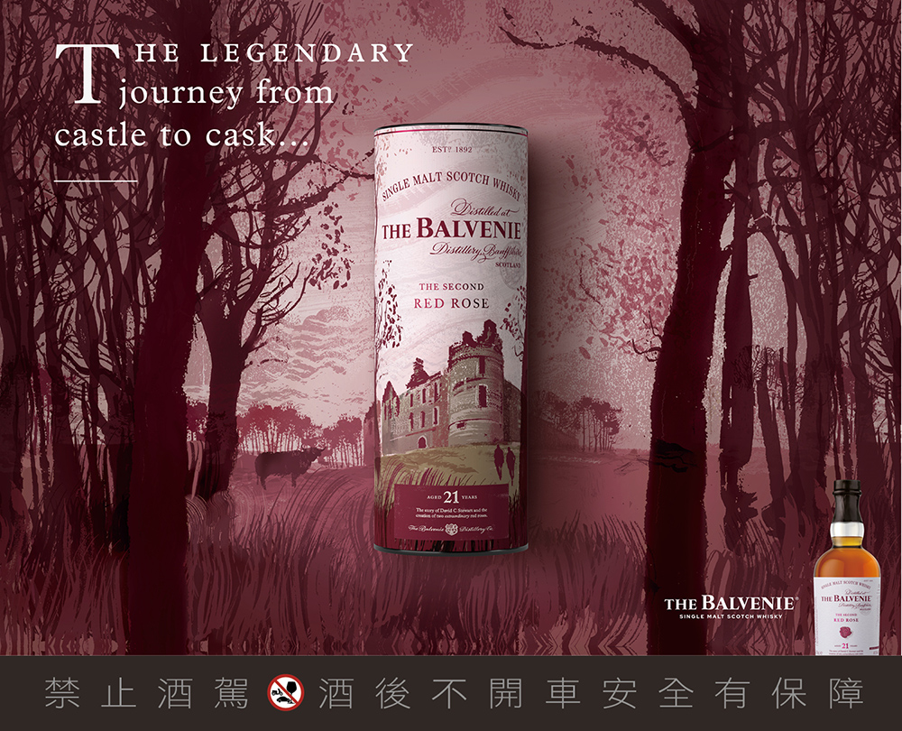 中古世紀有著許多浪漫迷人的故事,被稱為「加洛韋少女」的瑪格麗特道格拉斯,擁有足以傾城的美貌。即使她的丈夫與當時蘇格蘭國王詹姆士二世關係對立,但傳聞中國王仍醉心於她的美貌,因而以花園中最美麗的玫瑰花作為代價,讓瑪格麗特得以繼續居住在百富城堡中。這段六個世紀前的故事,啟發了大衛史都華的靈感,他以美國波本桶陳放21年的威士忌,透過澳洲席哈紅酒桶過桶,創作出去年甫上市,就讓威士忌愛好者瘋狂的「百富故事系列 21年傾城玫瑰」。顛覆對威士忌的既定印象,百富第一次使用紅酒桶過桶,讓酒液從裡到外皆以浪漫粉紅色作延伸。宛如玫瑰般迷人的紅暈色澤,在花香、花蜜及糖果香氣中,伴隨著黑莓及成熟桃子的香甜,清新森林與大地氣息讓芒果香及細緻橡木味自然流露,尾韻帶著溫和木質及香料口感。這款由此浪漫故事創造的珍釀為兩年限量,今年將是最後一批裝瓶。