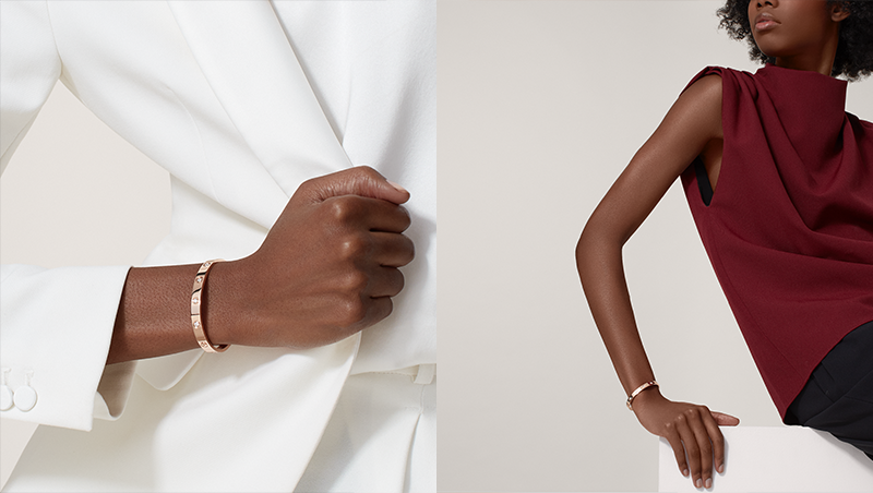而今年度新作也以更貼近日常的節奏,為 LOVE 的經典增添一抹更閃耀的光。中型款玫瑰金鋪鑲鑽石手環以更飽滿的比例展現光芒層次,像把溫柔與堅定放大成更從容的存在,單戴便足以成為造型主角,同為中型款的黃 K 金 4 顆鑽鑽石手環則以明亮金色貼合肌膚,像在日常光影裡悄然點亮的微光,最適合與不同金色、不同尺寸的 LOVE 疊戴,在腕間戴出時髦層次,有時是同色系堆疊出的極簡質感,有時是白 K 金的冷、玫瑰金的暖、黃 K 金的亮交織出的個性張力,也可以用鑲鑽與霧面對比,讓光與影展現出低調奢華。疊戴從不是為了堆疊存在感,而是以金色的冷暖、霧面與鑽光的層次,替你的個人魅力定下語氣,幹練或柔美、內斂或個性,都能在腕間不必多言地被看見。